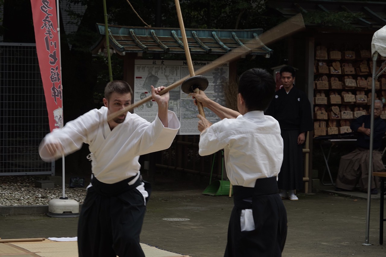 午後1時から3時頃まで、立身流矢口支部による『古武道奉納演武』が行われます。(雨天中止)